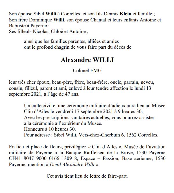 Alexandre WILLI 18 aoû. 1974 - 13 sep. 2021 Avis mortuaire PFG Télecharger PDF Partager sur: Galerie PreviousNext PreviousNext