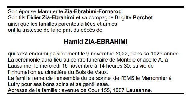 Hamid ZIA-EBRAHIMI 10 juin. 1921 - 09 nov. 2022 Avis mortuaire PFG Télecharger PDF Partager sur: Galerie PreviousNext PreviousNext
