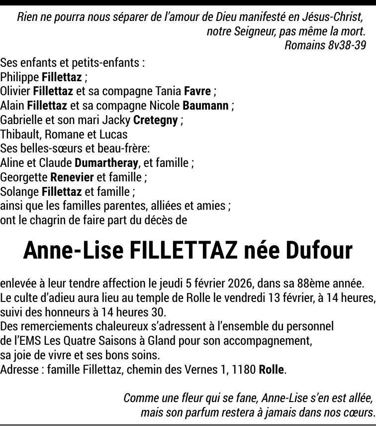 Madame Anne-Lise FILLETTAZ