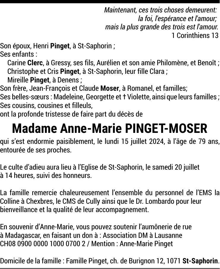 Madame Anne-Marie PINGET-MOSER