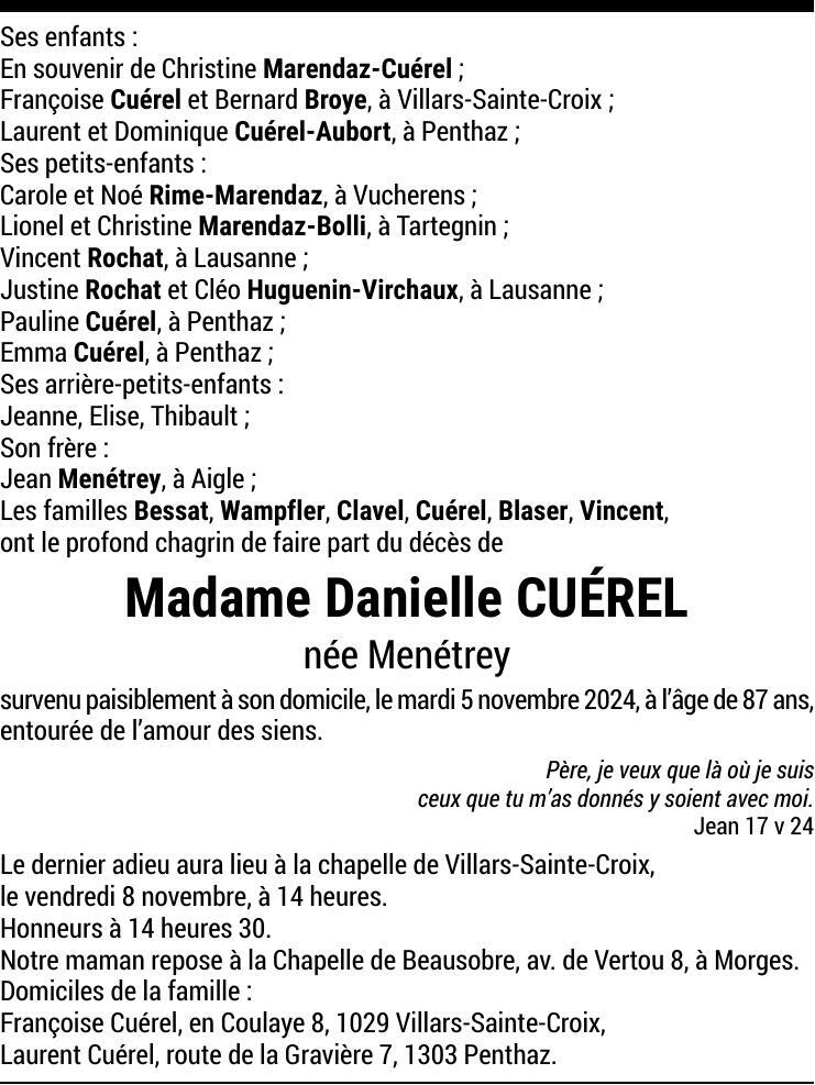 Madame Danielle CUÉREL-MÉNÉTREY