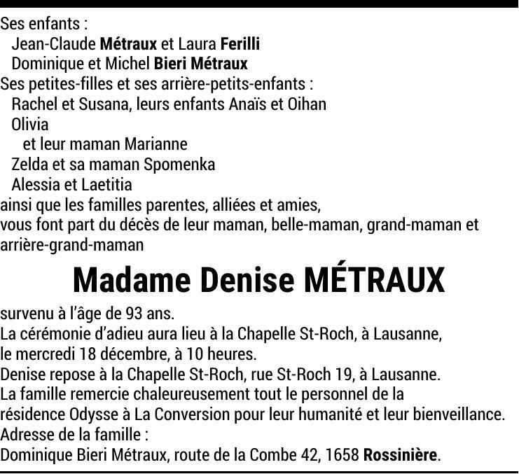 Madame Denise MÉTRAUX