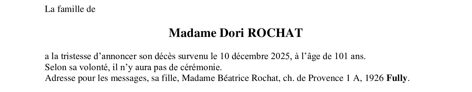 Madame Dori ROCHAT