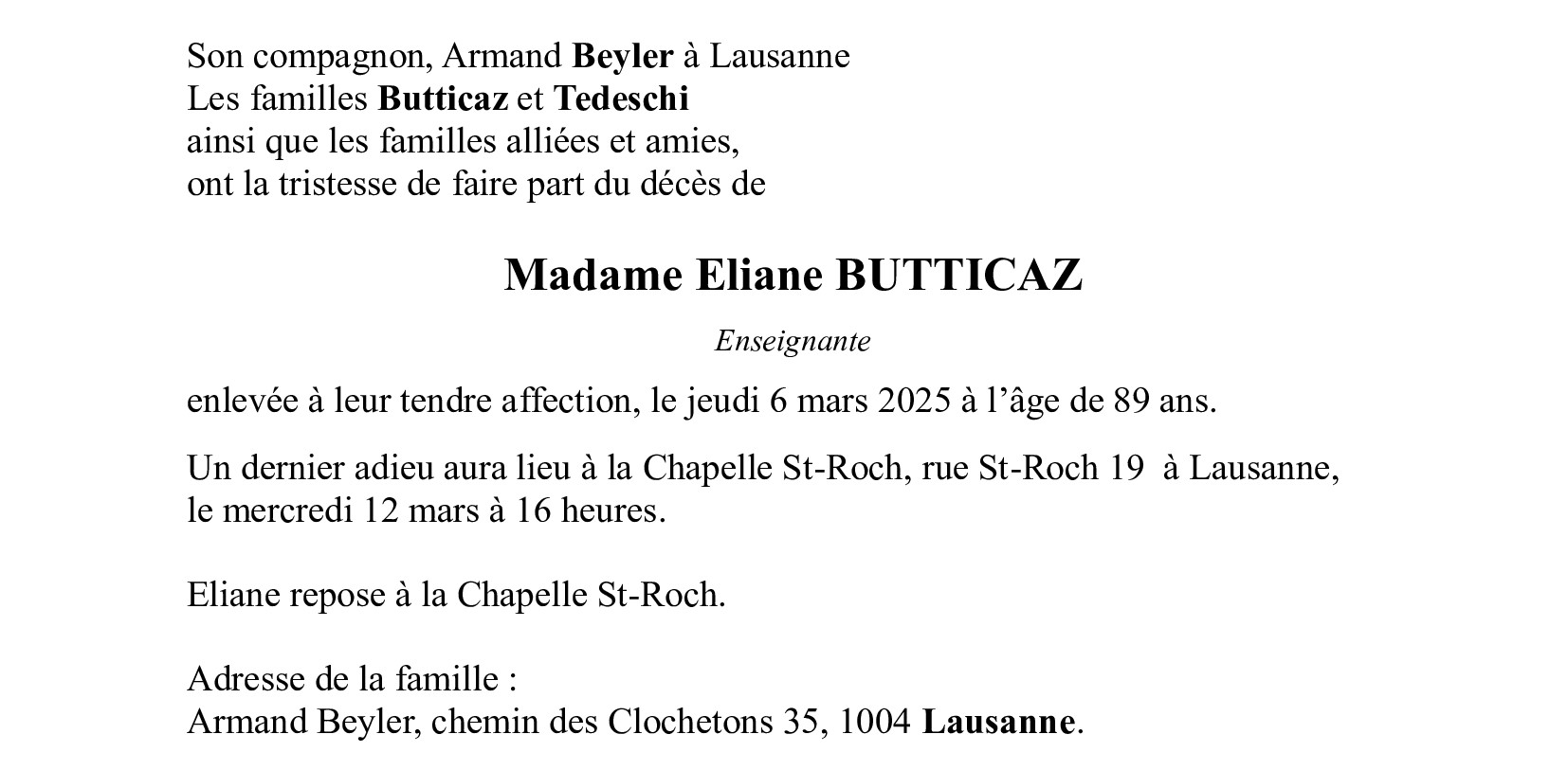 Madame Eliane BUTTICAZ