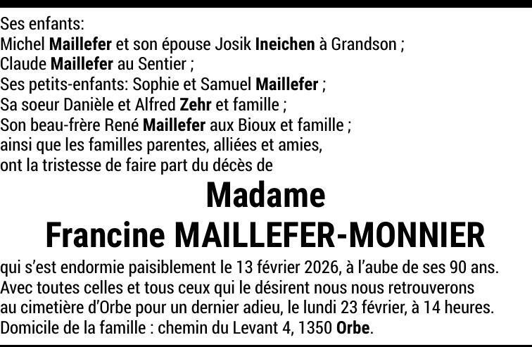 Madame Francine MAILLEFER-MONNIER