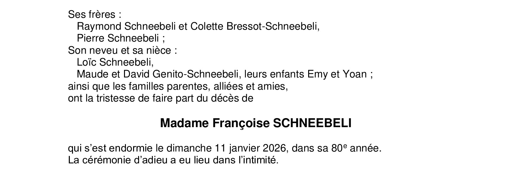 Madame Françoise SCHNEEBELI