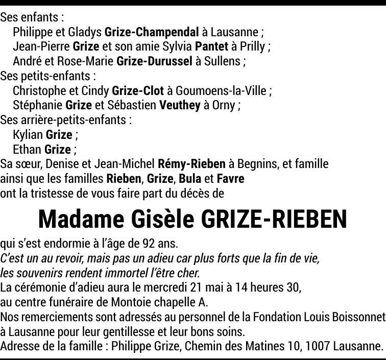 Madame Gisèle GRIZE-RIEBEN