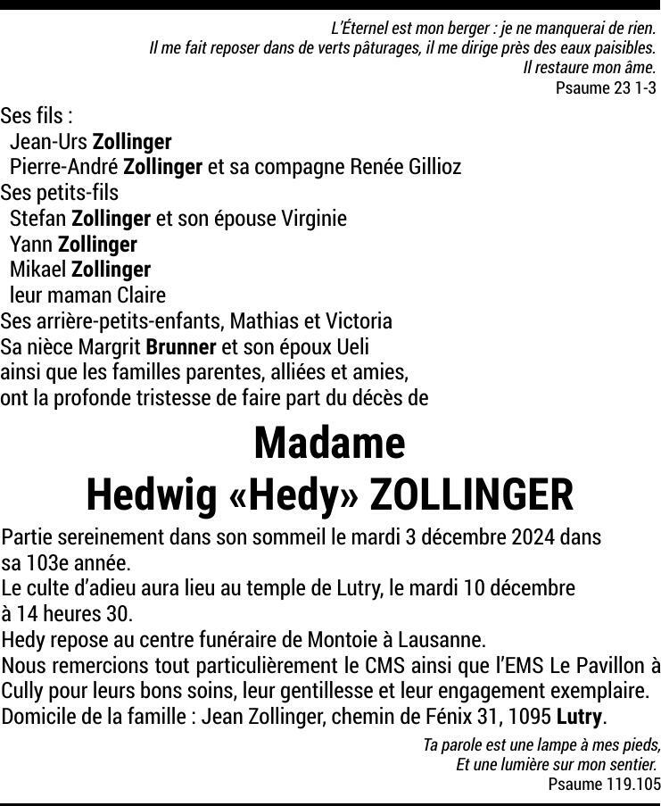 Madame Hedwig ZOLLINGER