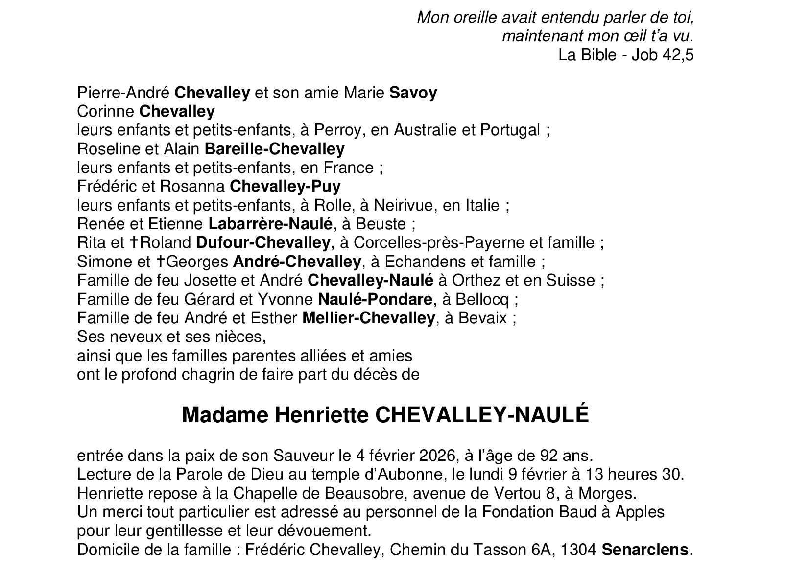 Madame Henriette CHEVALLEY