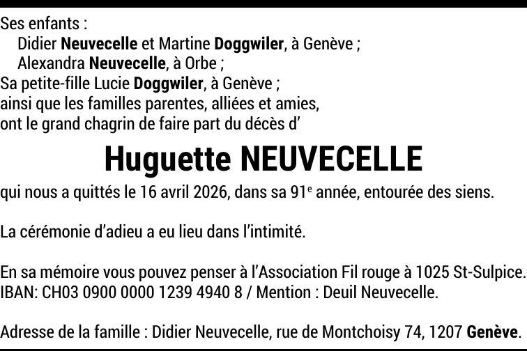 Madame Huguette NEUVECELLE