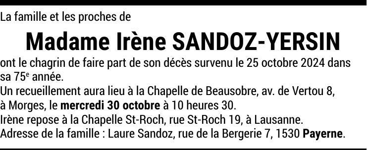 Madame Irène SANDOZ-YERSIN