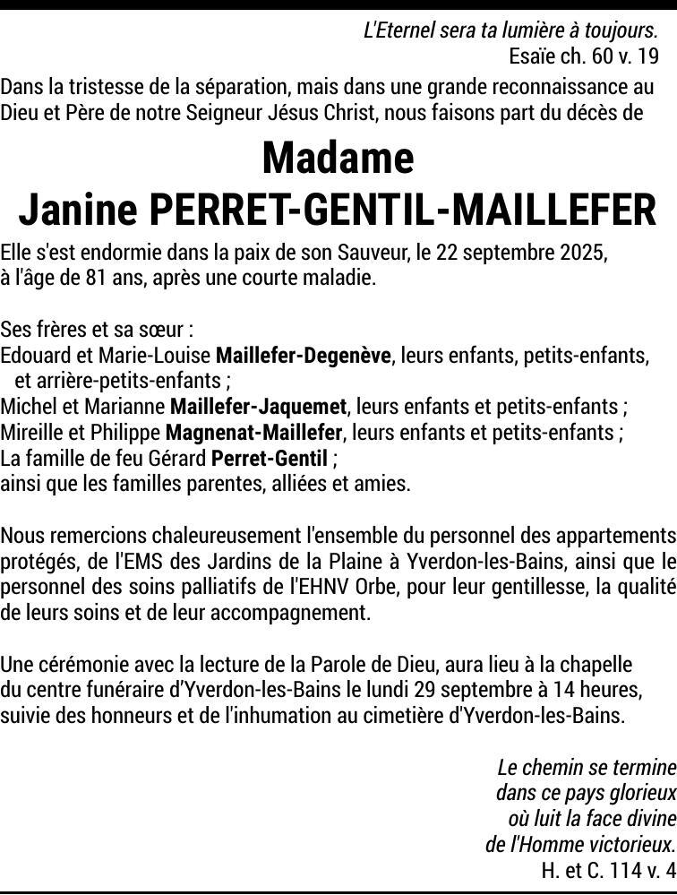 Madame Janine PERRET-GENTIL-MAILLEFER