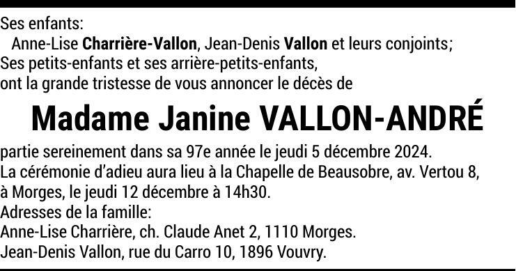 Madame Janine VALLON-ANDRÉ