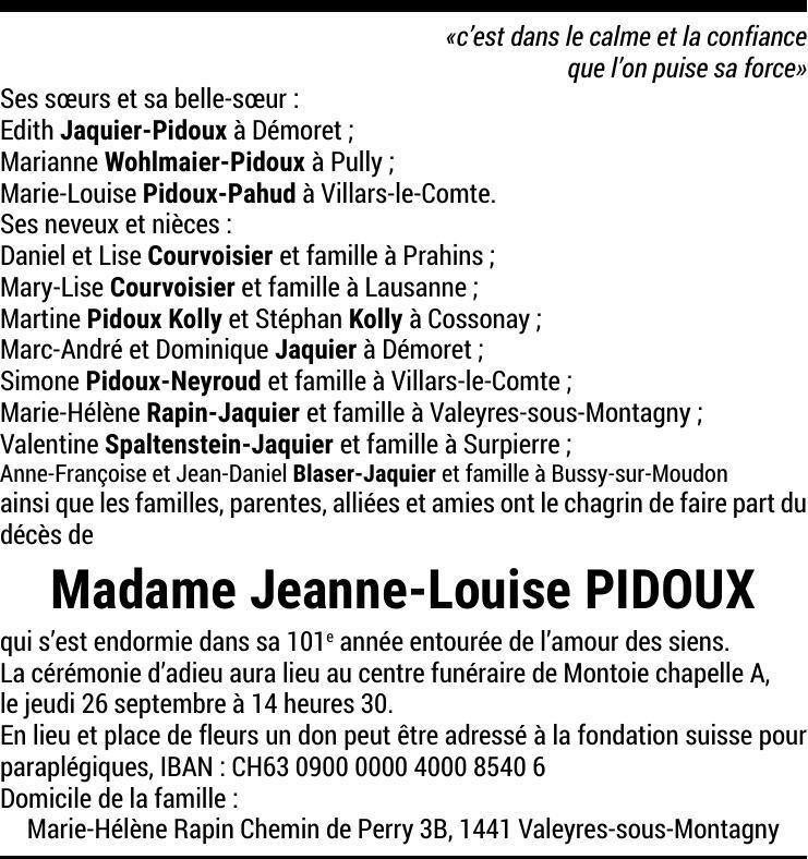 Madame Jeanne-Louise PIDOUX