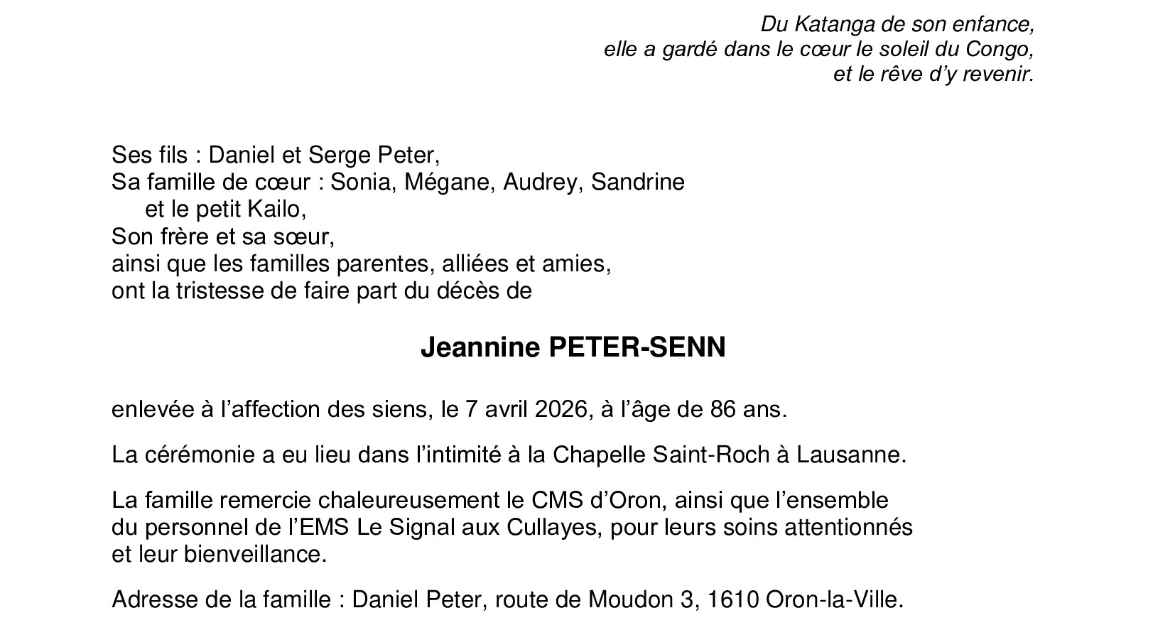 Avis mortuaires / Remerciements