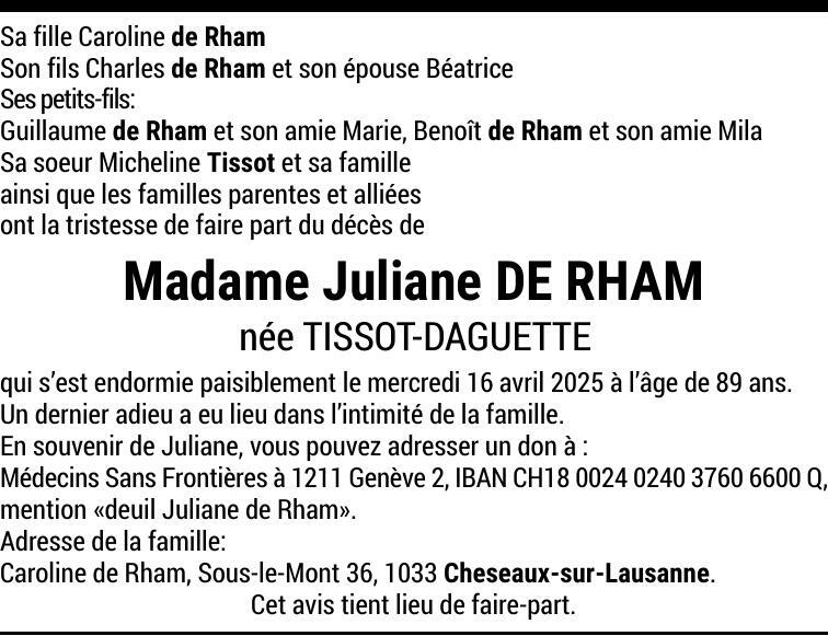 Madame Juliane DE RHAM