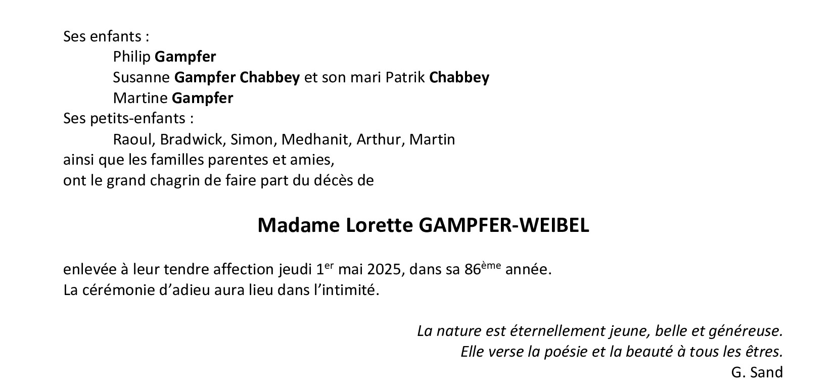 Madame Lorette GAMPFER