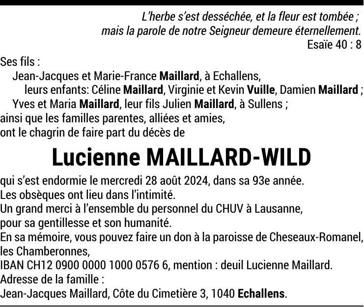Madame Lucienne MAILLARD-WILD