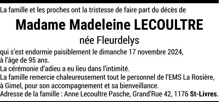 Madame Madeleine LECOULTRE