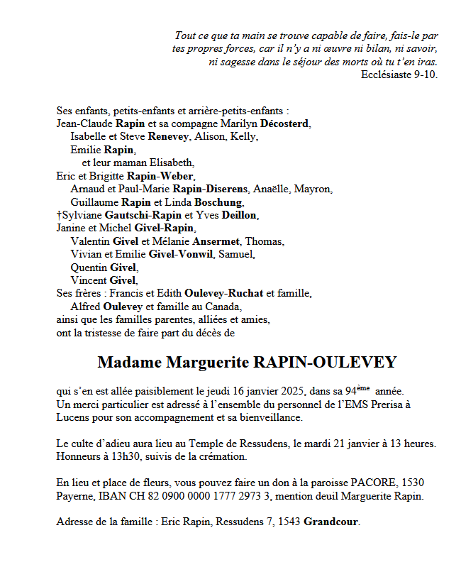 Madame Marguerite RAPIN-OULEVEY