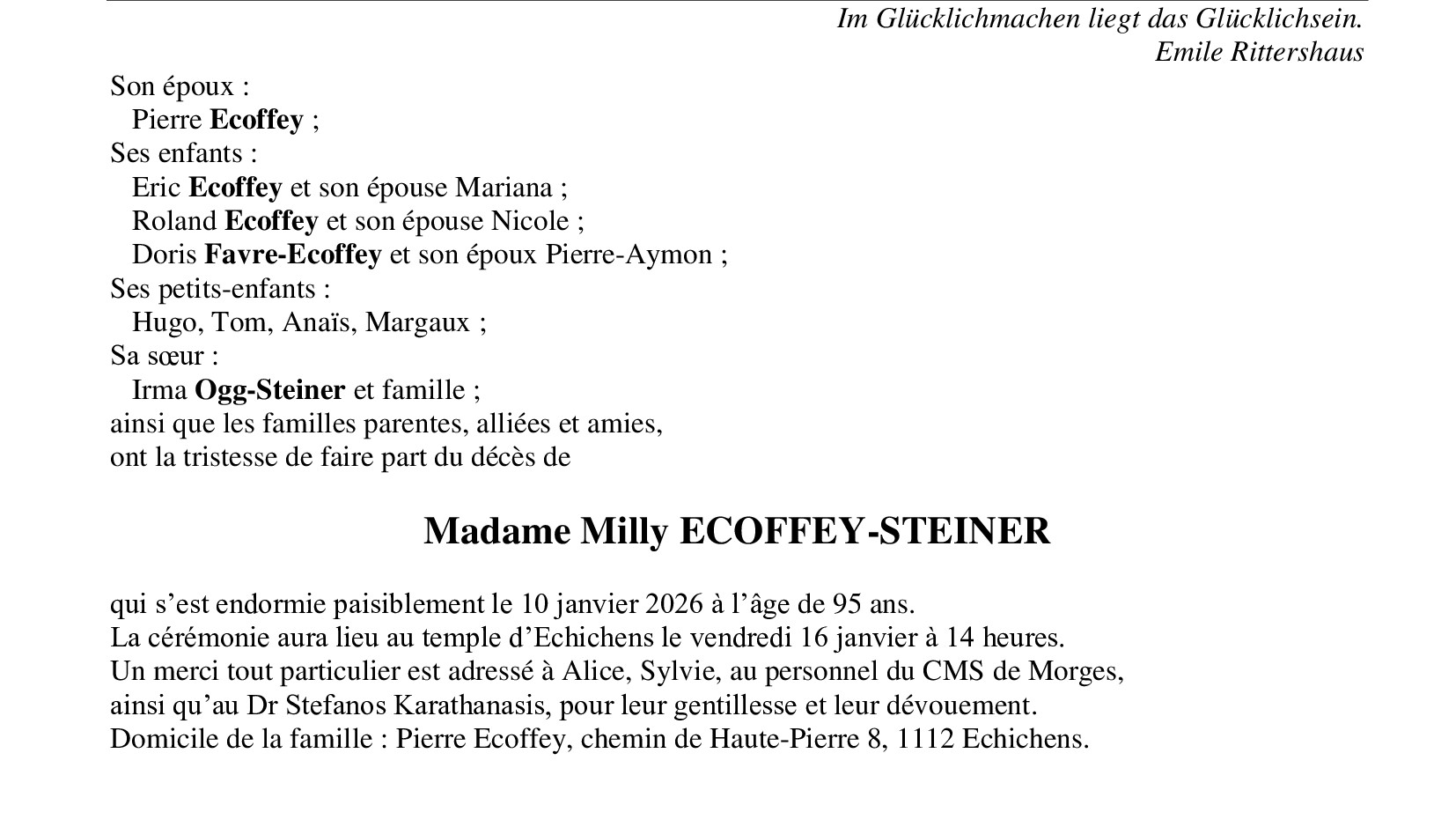 Madame Milly ECOFFEY