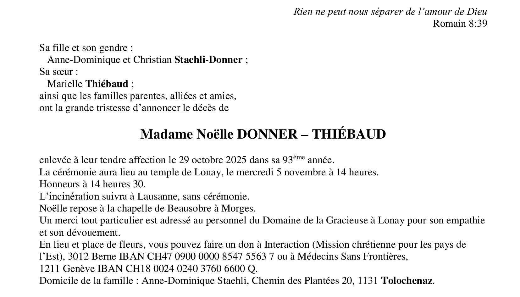 Madame Noëlle DONNER