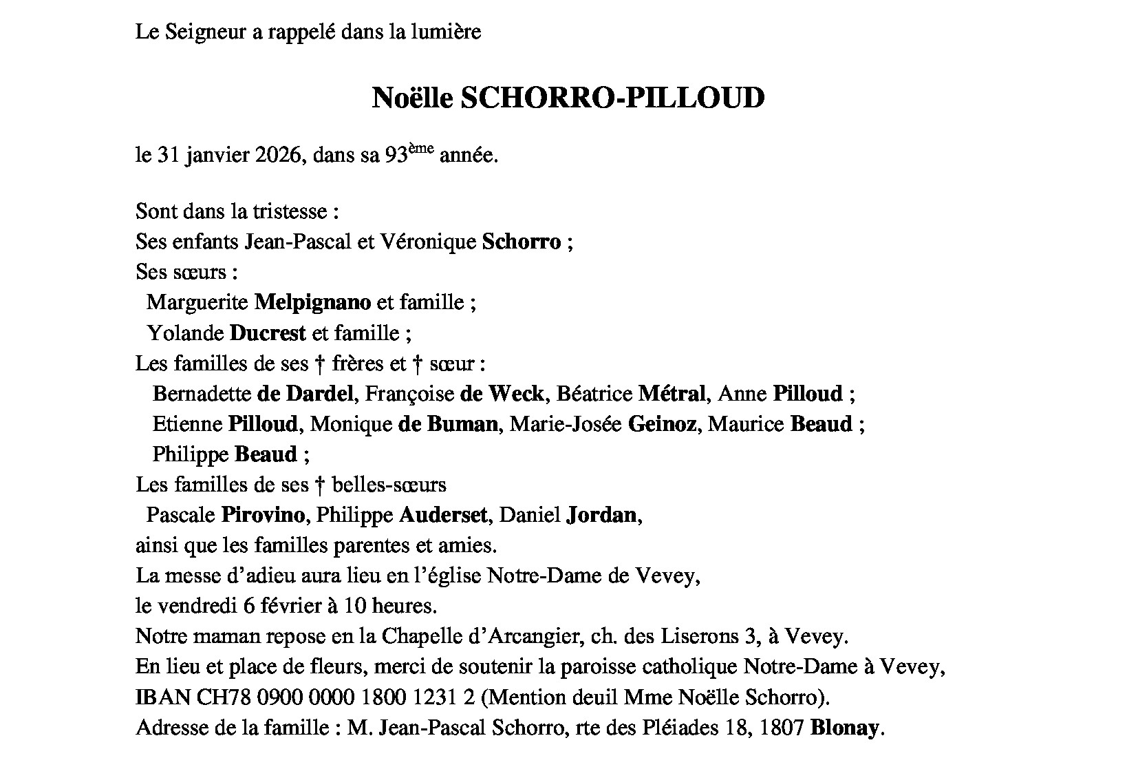 Madame Noëlle SCHORRO-PILLOUD