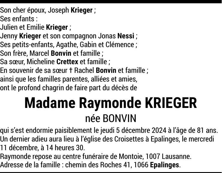 Madame Raymonde KRIEGER 04 aoû. 1943 - 05 déc. 2024 Avis mortuaire PFG Partager sur: Galerie PreviousNext PreviousNext