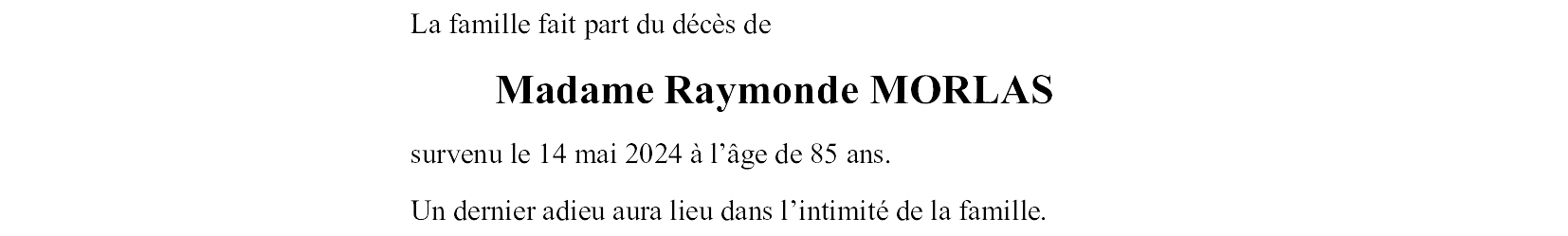 Madame Raymonde MORLAS