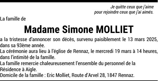 Madame Simone MOLLIET