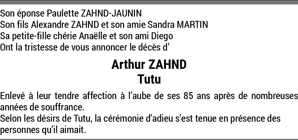Monsieur Arthur ZAHND