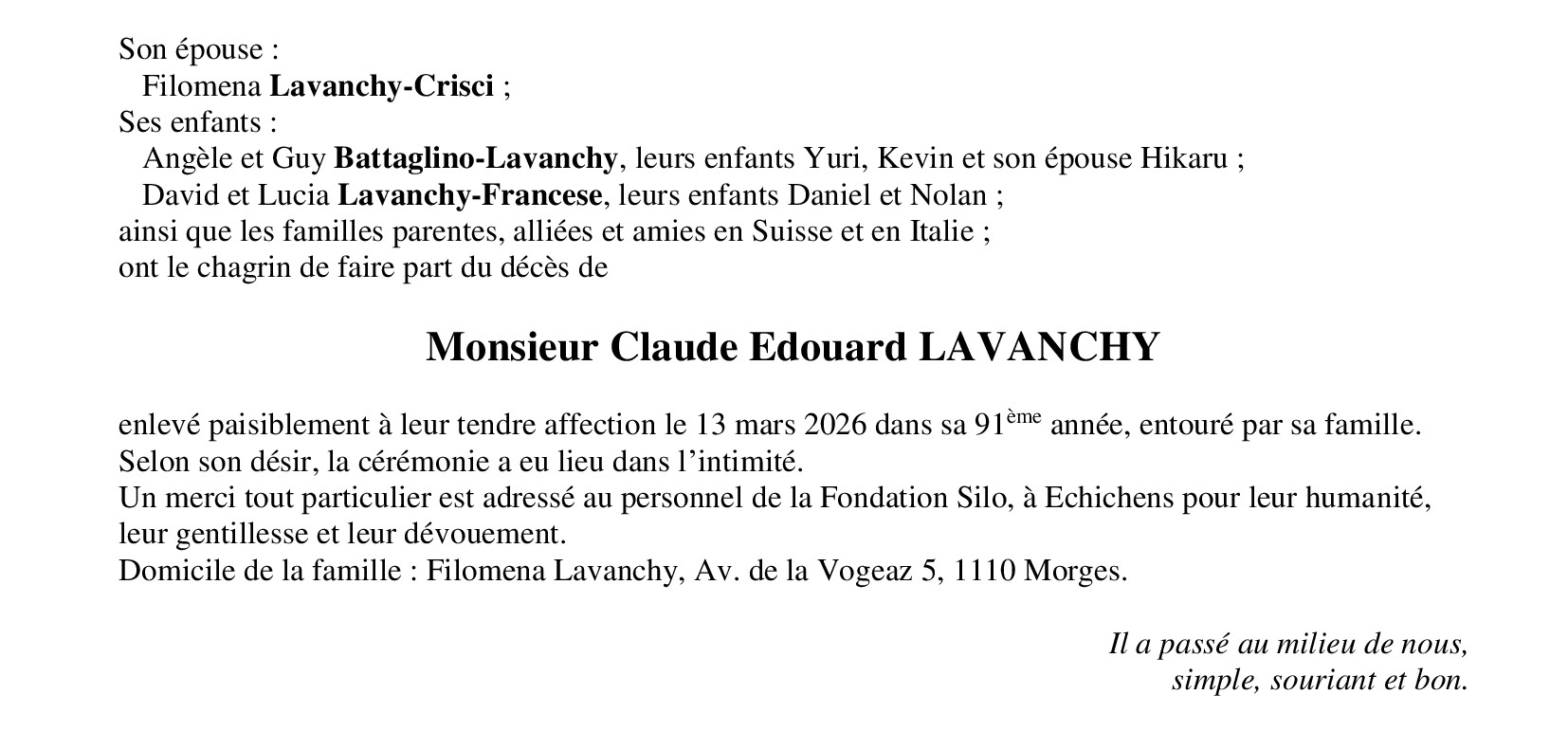 Monsieur Claude Edouard LAVANCHY