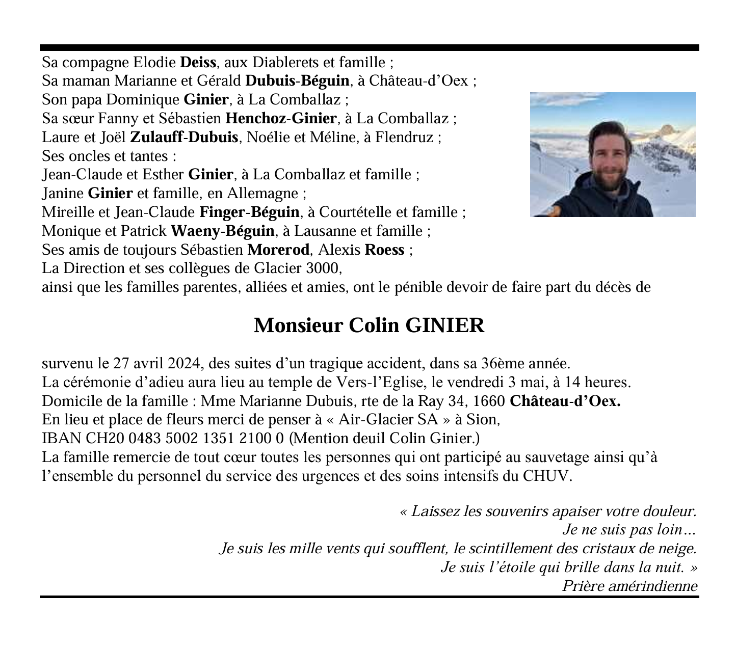 Monsieur Colin GINIER 20 nov. 1988 - 27 avr. 2024 Avis mortuaire PFG Télecharger PDF Partager sur: Galerie PreviousNext PreviousNext