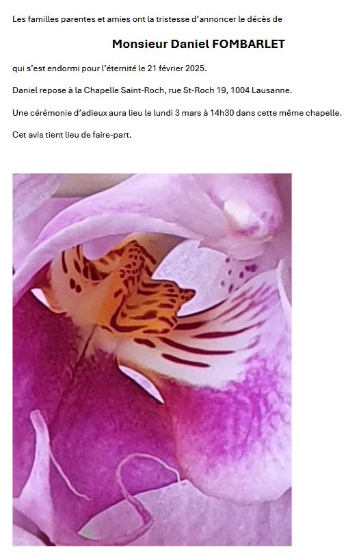 Monsieur Daniel FOMBARLET 29 fév. 1960 - 21 fév. 2025 Avis mortuaire PFG Télecharger PDF Partager sur: Galerie