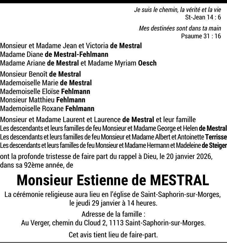Monsieur Estienne de Mestral