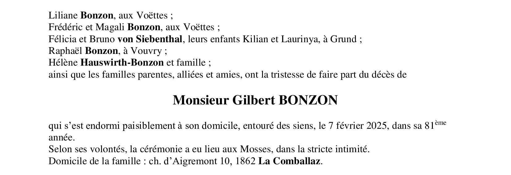 Monsieur Gilbert BONZON