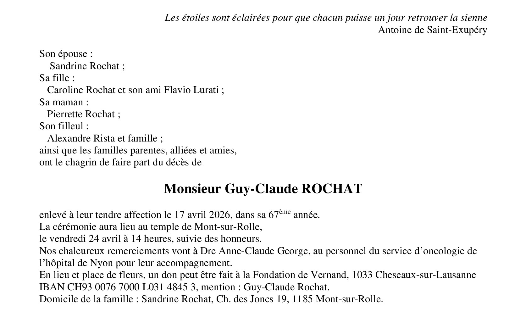Monsieur Guy-Claude ROCHAT