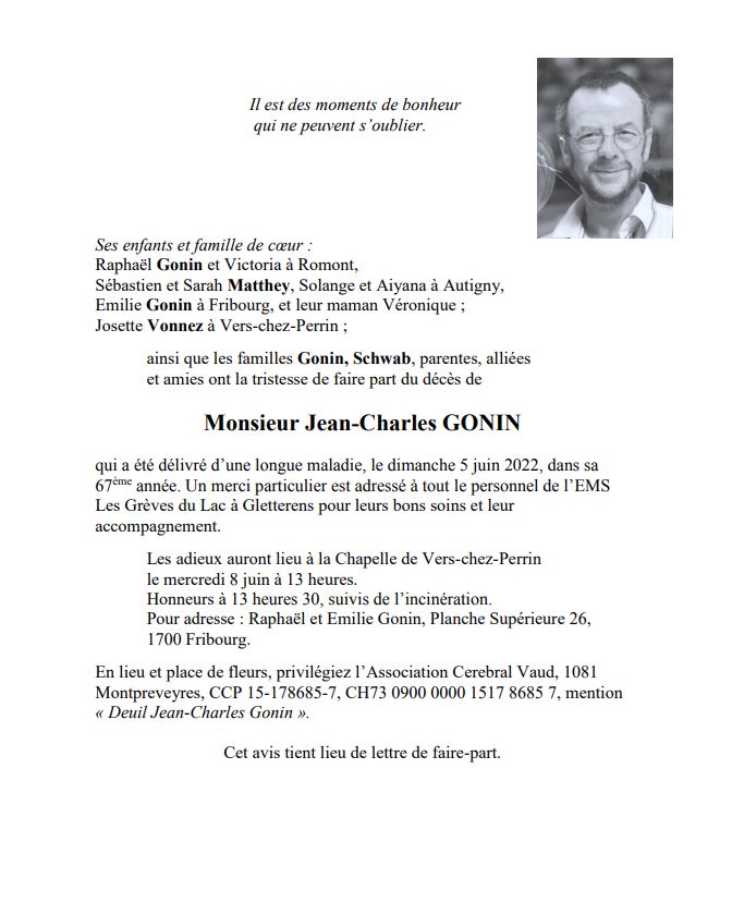 Monsieur Jean-Charles GONIN 10 aoû. 1955 - 05 juin. 2022 Avis mortuaire PFG Télecharger PDF Partager sur: Galerie PreviousNext PreviousNext