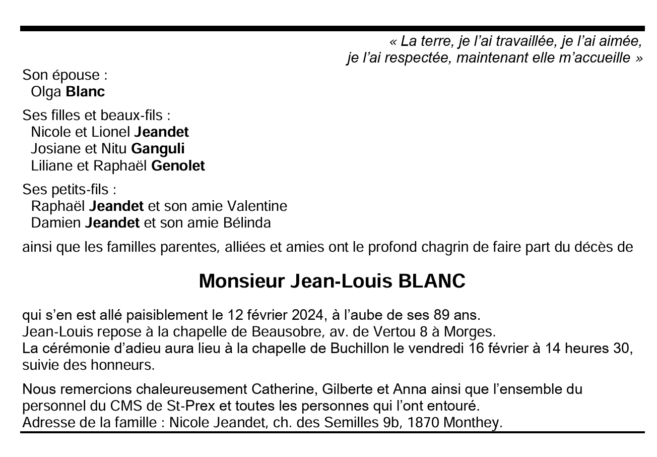 Monsieur Jean-Louis BLANC 01 mai. 1935 - 12 fév. 2024 Avis mortuaire PFG Télecharger PDF Partager sur: Galerie PreviousNext PreviousNext