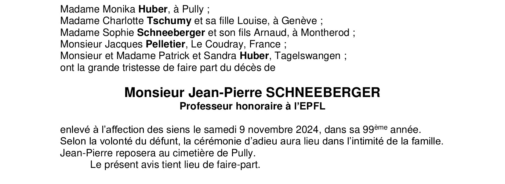 Monsieur Jean-Pierre SCHNEEBERGER