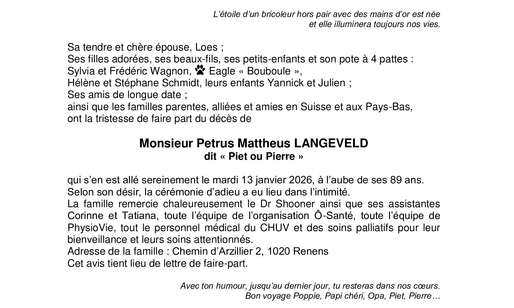 Monsieur Piet Pierre LANGEVELD