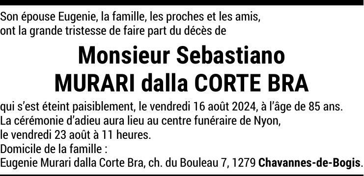 Monsieur Sebastiano MURARI dalla CORTE BRA 07 avr. 1939 - 16 aoû. 2024 Avis mortuaire PFG Partager sur: Galerie