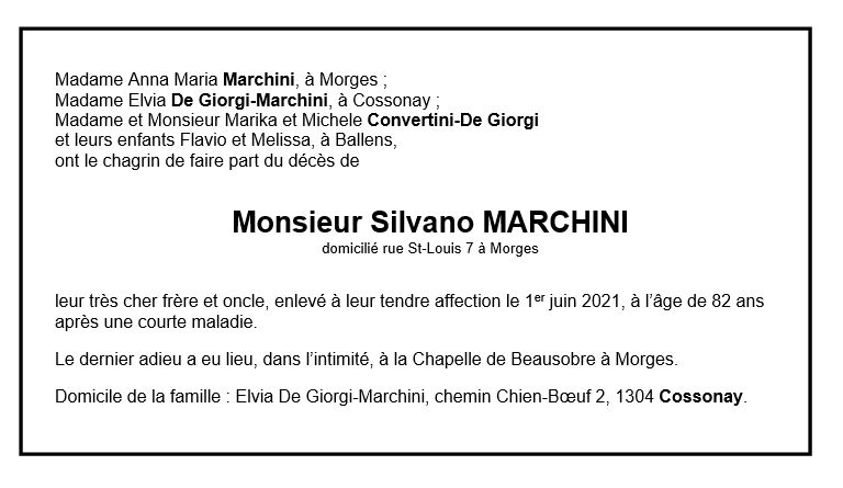 Silvano MARCHINI 11 mar. 1939 - 01 juin. 2021 Avis mortuaire PFG Télecharger PDF Partager sur: Galerie PreviousNext PreviousNext