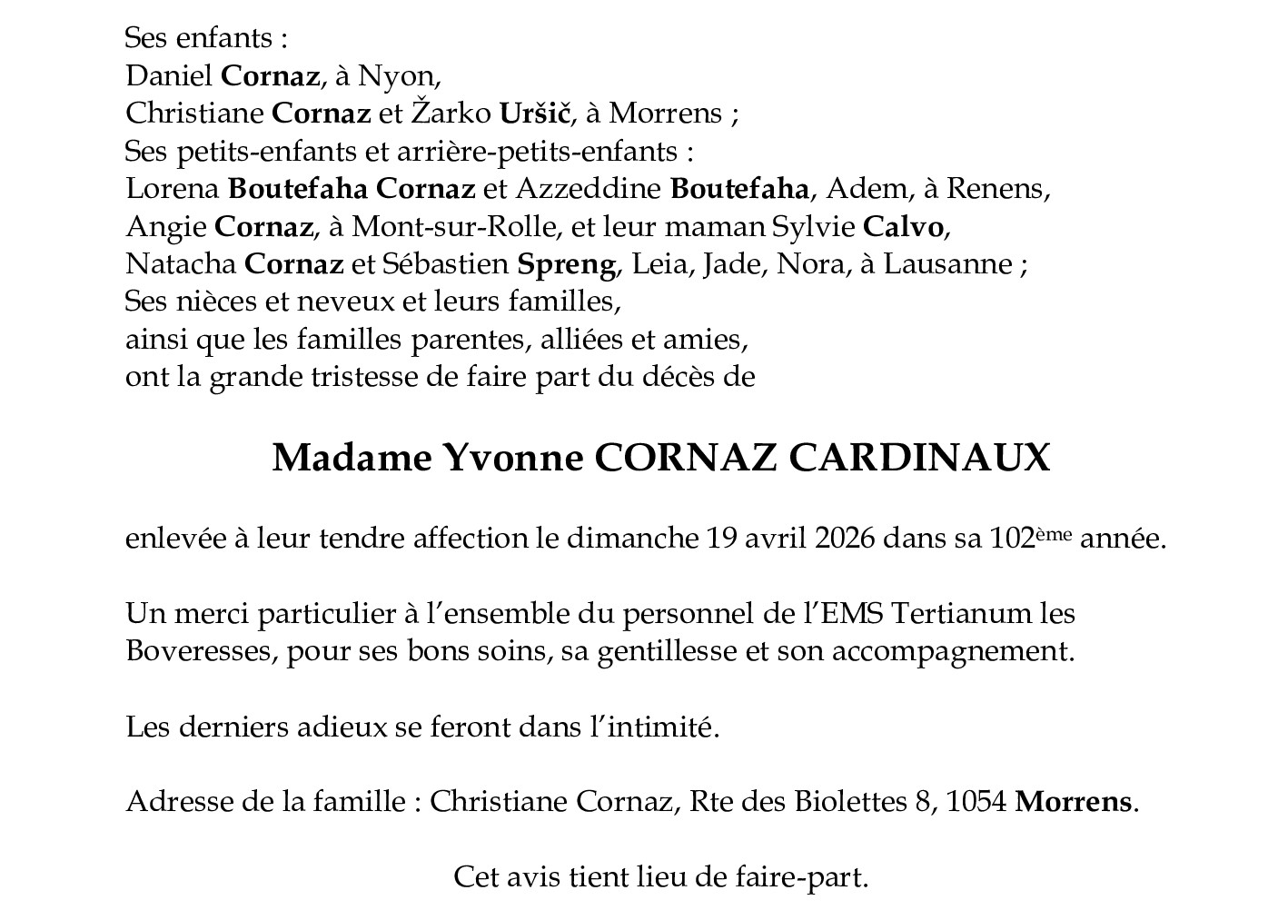 Yvonne CORNAZ CARDINAUX
