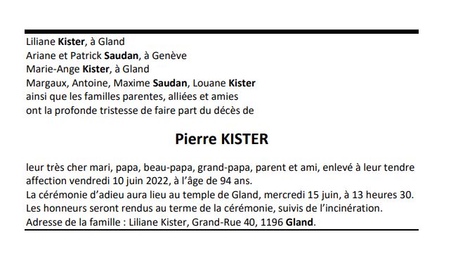 Pierre KISTER 02 mai. 1928 - 10 juin. 2022 Avis mortuaire PFG Télecharger PDF Partager sur: Galerie PreviousNext PreviousNext